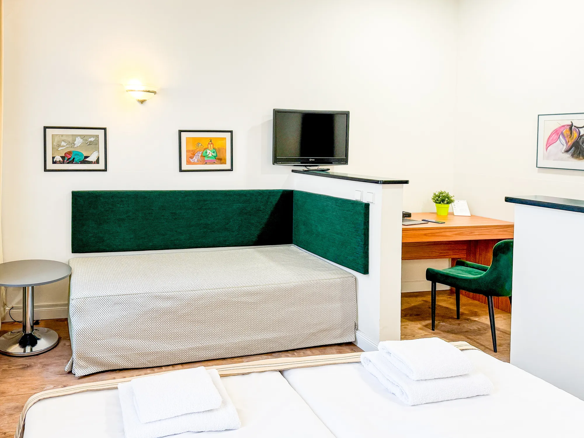Pokoj Comfort až pro 3 hosty s výhledem do ulice a kávovarem.